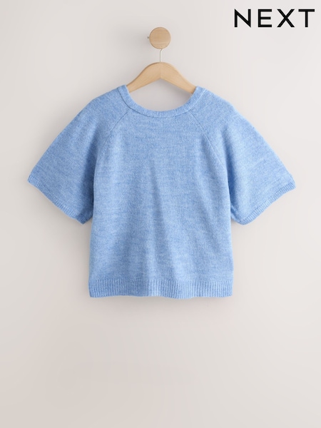 Blue Twist Back Knitted Poncho