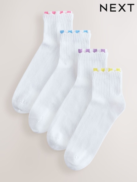 White Double Welt Cropped Ankle Socks 4 Pack