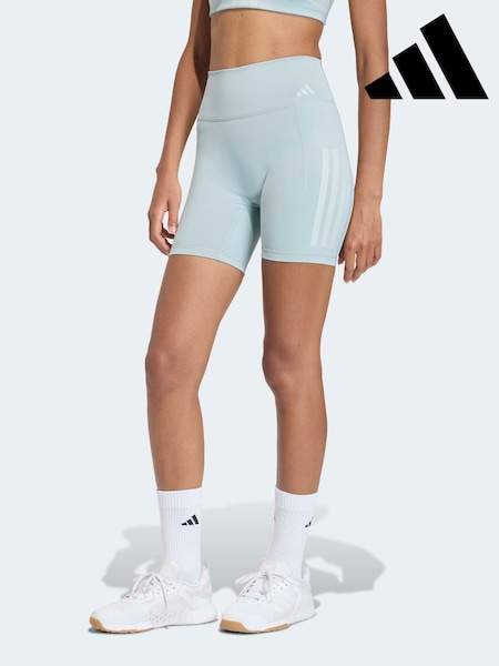 adidas Light Blue Denim Optime Workout 3-Stripes Short Leggings