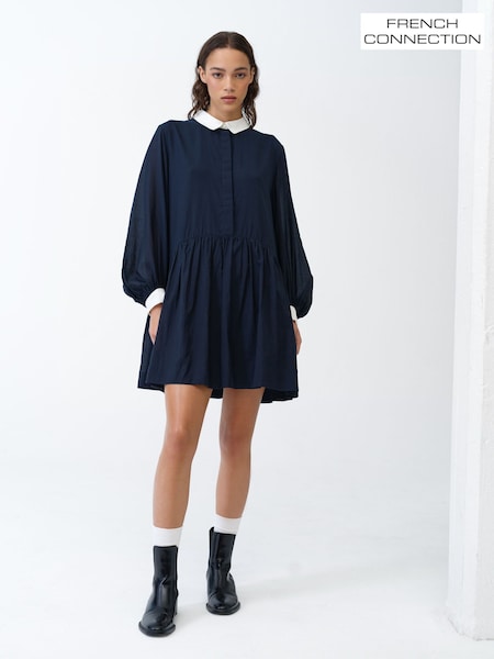 French Connection Blue Monica Voile Voluminous Shirt Dress