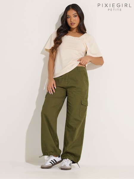 PixieGirl Petite Green Cuffed Cargo Trousers