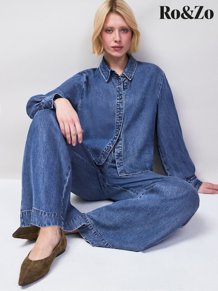 Ro&Zo Blue Tencel Denim Cropped Shirt