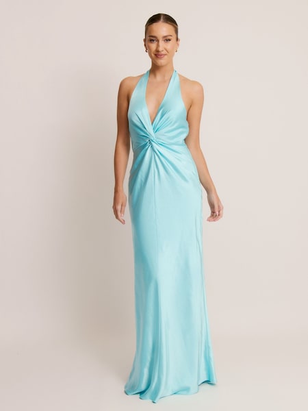 Six Stories Blue Cowl Back Satin Bridesmaid Dress
