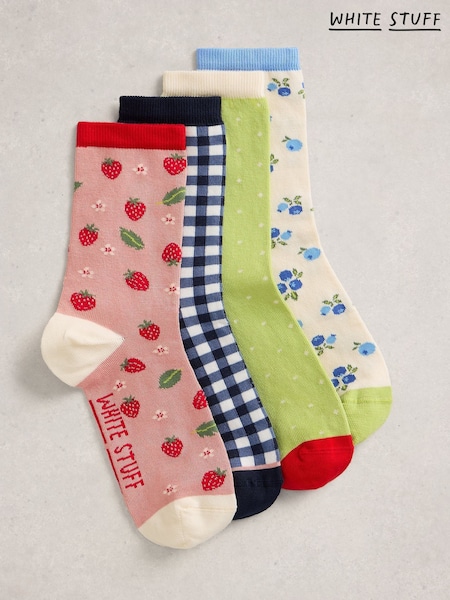 White Stuff Blue Summer Fruit Ankle Socks 4PK