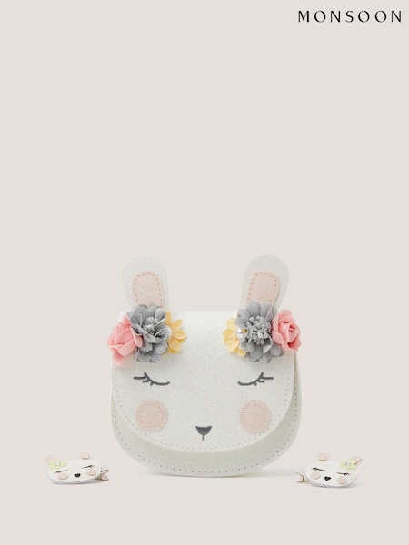 Monsoon White Glitter Bunny Bag & Hair Clips Set