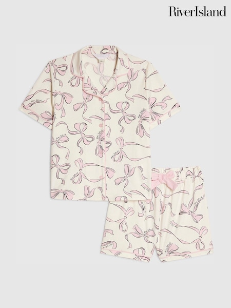 River Island Cream Short Sleeve Bow Pjyamas