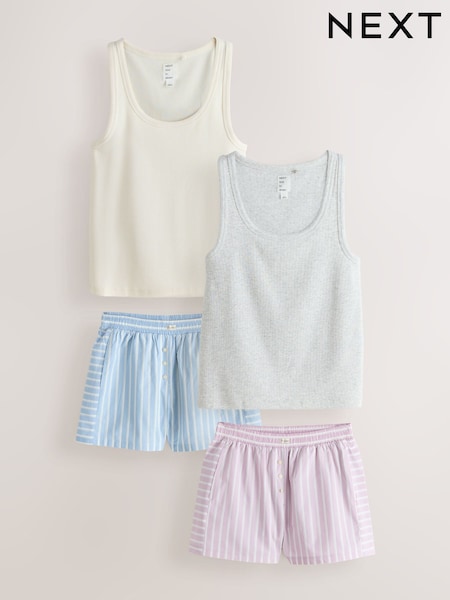 Grey and Ecru Rib Vest Short Pyjamas 2 Pack