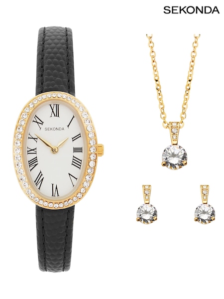 Sekonda Black Bellamy 23mm Oval Analogue Watch with Black Strap Gift Set
