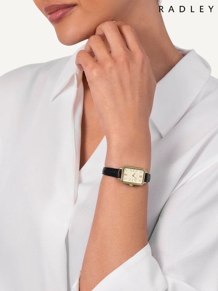 Radley Black Pale Gold Plated Rectangular Case Leather Strap Watch