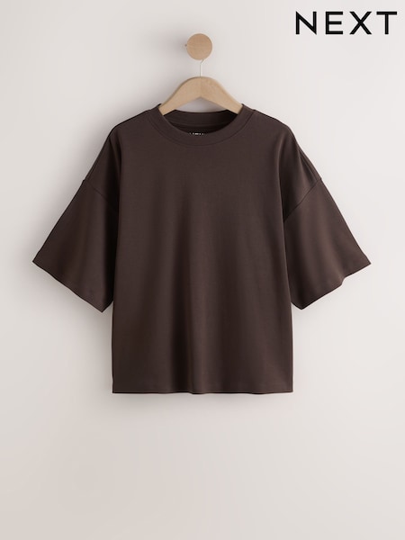 Chocolate Brown Oversized Boxy Fit Heavyweight Crew Neck T-Shirt