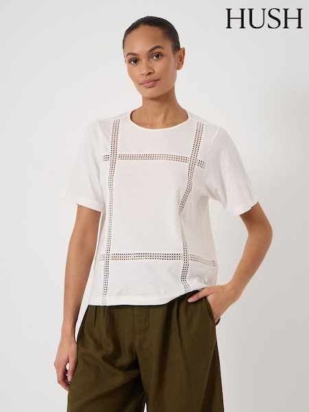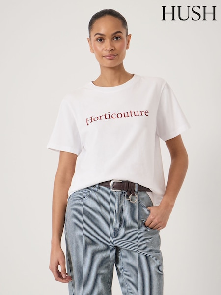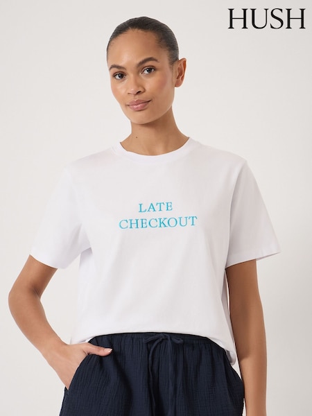 Hush White Late Checkout Embroidered Cotton T-Shirt