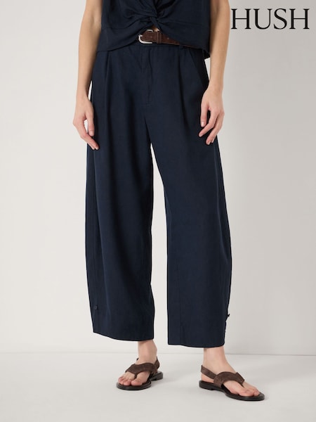 Hush Blue Dania Linen Blend Barrel Leg Trousers