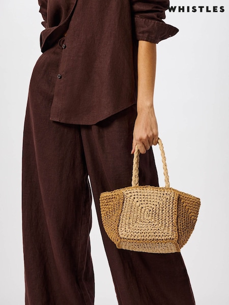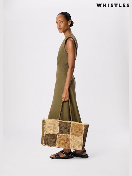 Whistles Nude Patchwork Straw Tote Bag