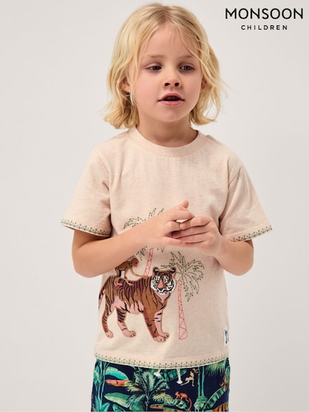 Monsoon Cream Embroidered Tiger T-Shirt