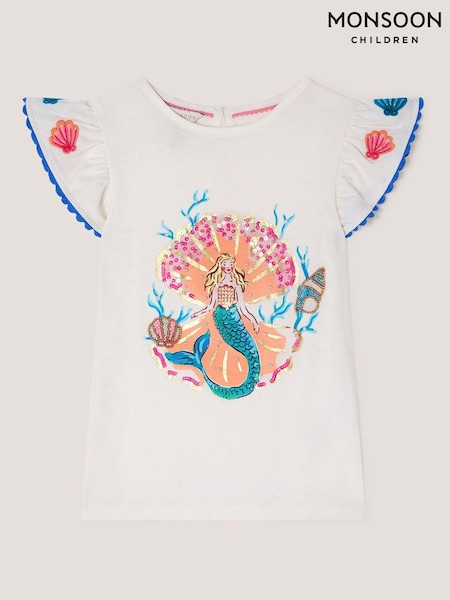 Monsoon Cream Mermaid Beaded T-Shirt
