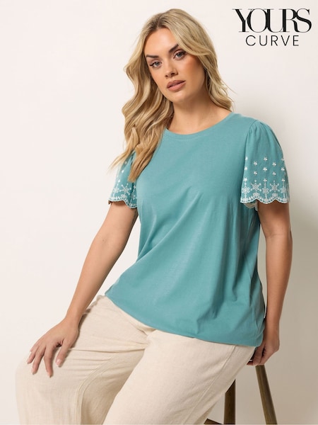 Yours Curve Green Angel Sleeve Embroidered T-Shirt