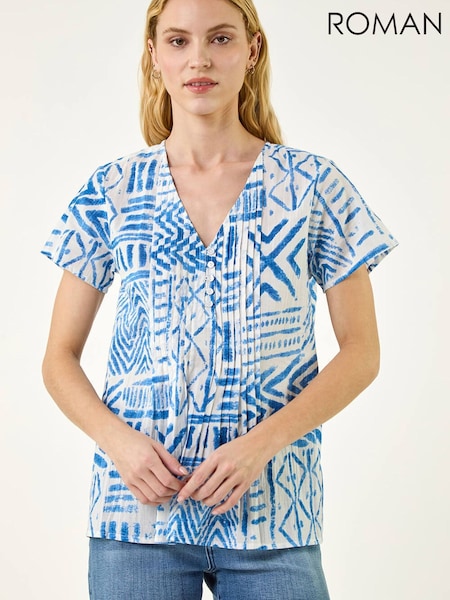 Roman Blue Abstract Print V-Neck Tunic Top