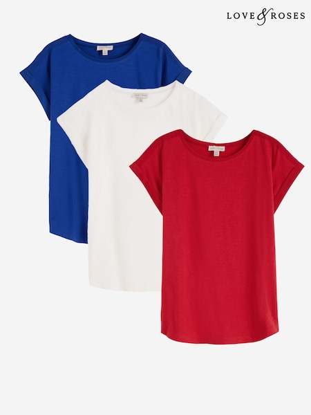 Love & Roses X3 White Red and Cobalt Blue Crew Neck T-Shirt