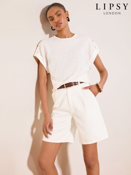 Lipsy White Textured Tab Detail T-Shirt