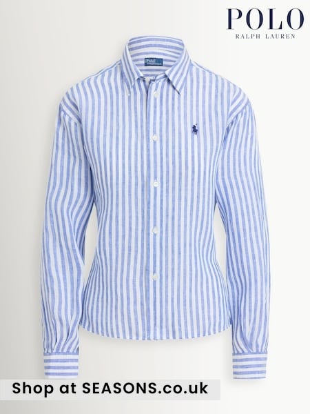 Polo Ralph Lauren Blue Stripe Woven Linen Shirt