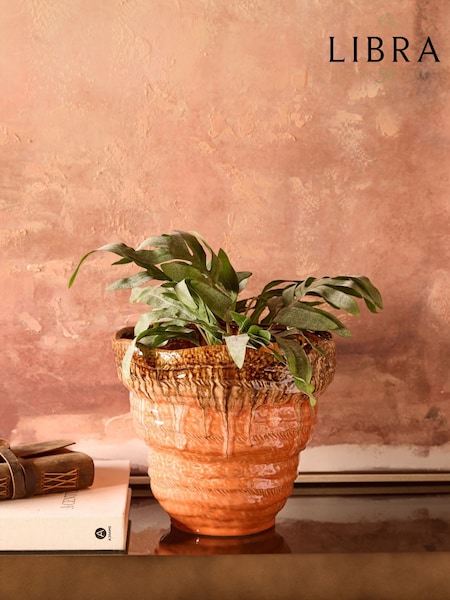 Libra Interiors Orange Ibiza Reactive Glaze Large Planter