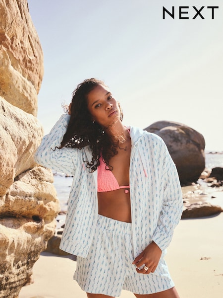 White/Fluro Stripe Towelling Zip Through Hoodie