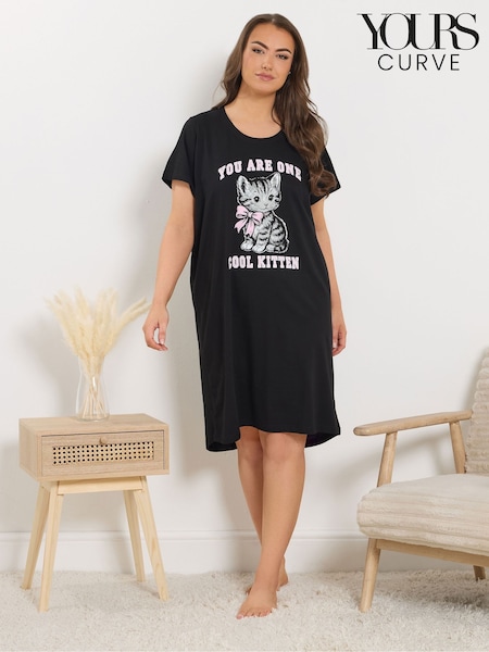 Yours Curve Black Cool Kitten Dipped Back Nightdress
