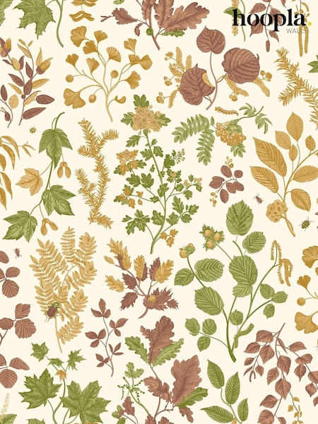 Hoopla Walls Ginger Olive Botanical Leaves A4 Wallpaper Sample