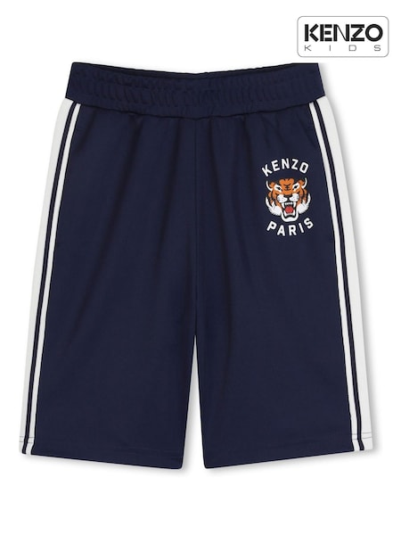 KENZO KIDS Logo Side Stripe Bermuda Blue Shorts