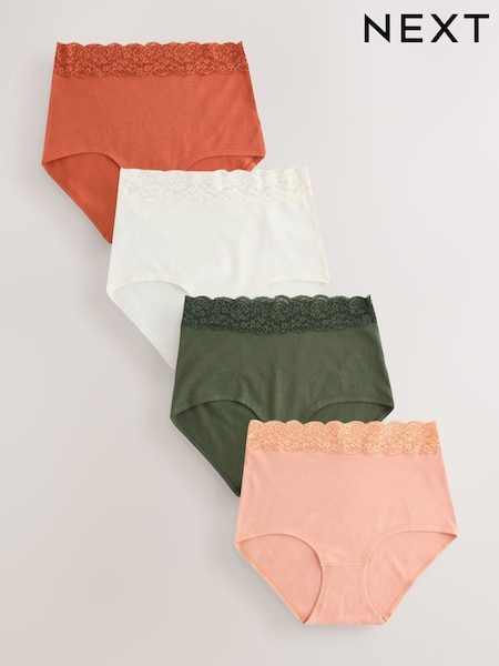 Rust Red High Leg Cotton and Lace Knickers 4 Pack