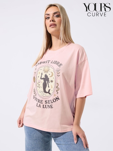 Yours Curve Pink Limited Espirit Libre Slogan T-Shirt