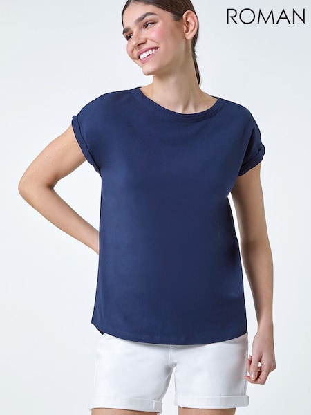Roman Blue Plain Stretch Jersey T-Shirt