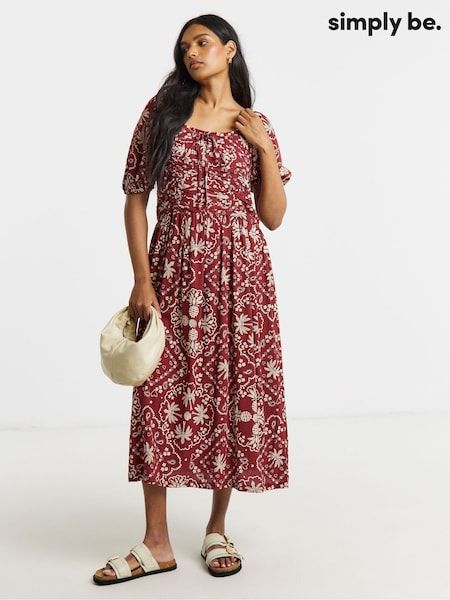 Simply Be Brown Spot Print Shirred Chiffon Midi Dress