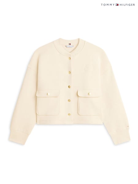 Tommy Hilfiger White Gold Tone Button Interlock Knit Relaxed Cardigan