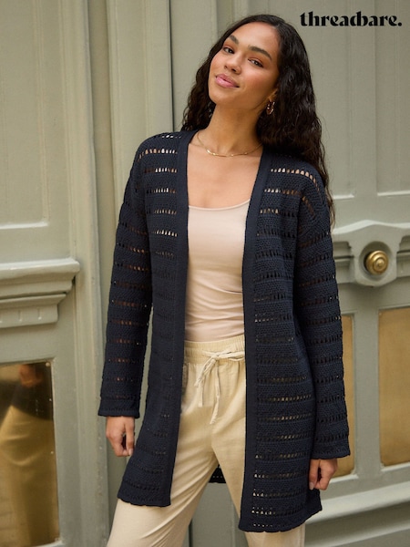 Threadbare Blue Pointelle Knit Longline Cardigan