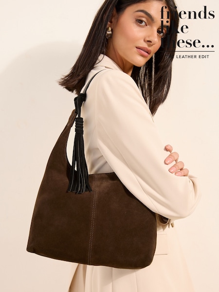 Friends Like These Chocolate Brown Suede Mini Slouch Shoulder Bag