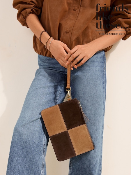 Friends Like These Chocolate Brown Colourblock Suede Pouch Clutch Bag