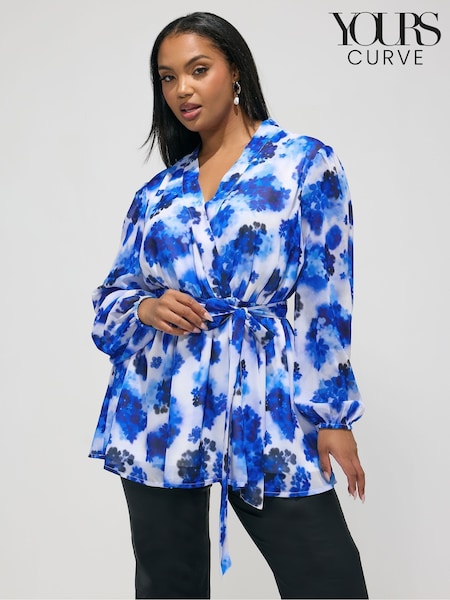 Yours Curve Blue London Floral Wrap Top