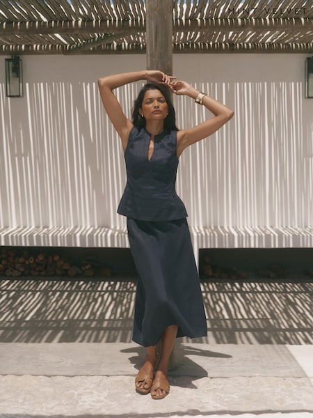 The Set 2 Pack Lightweight Tie Waist A-Line Maxi Skirts With Linen Light Blue/White