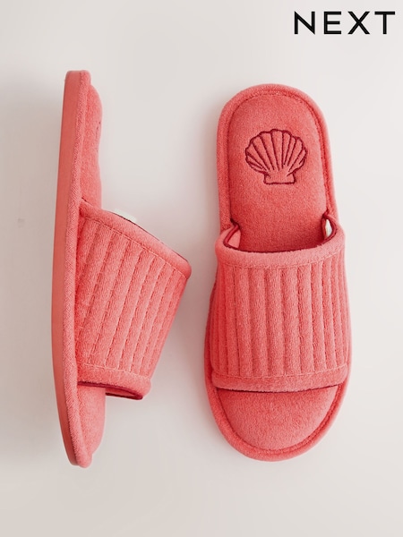 Peach Pink Towelling Slider Slippers