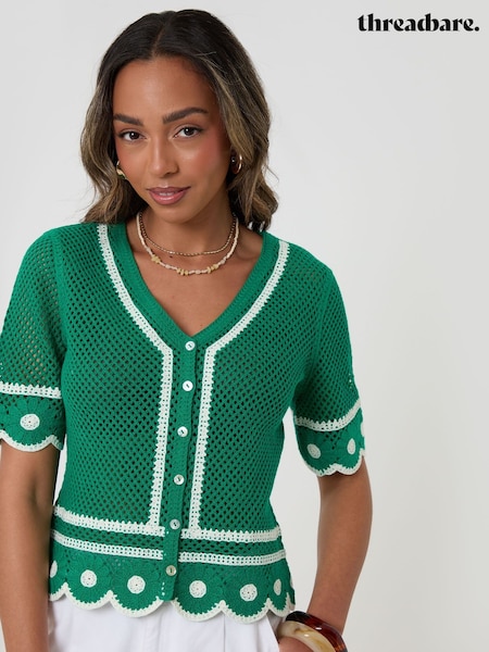 Apricot Green Cotton Blend Crochet Embroidered Top