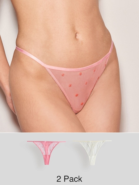 Coral/Ecru Daisy Embroidered Knickers 2 Pack