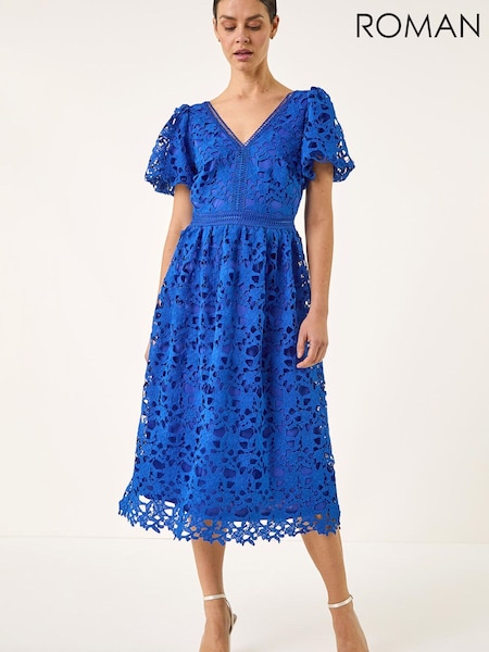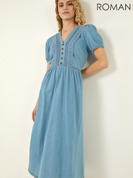 Apricot Blue Ditsy Cluster Crochet Maxi Dress