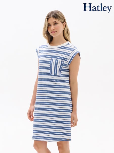 Joules Girls' Orla Navy & White Striped Short Sleeve Polo Shirt Dress