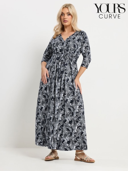 Yours Curve Blue Soft Touch Paisley Wrap Dress