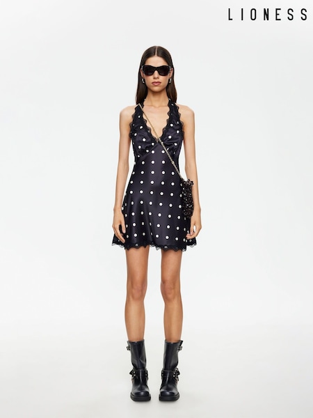Lioness Black Stars Align Polka Dot Mini Dress