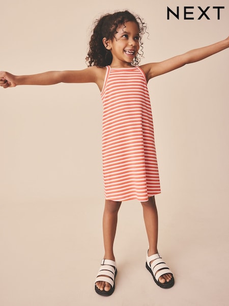 Red Stripe Strappy Crinkle Summer Dress (3-16yrs)