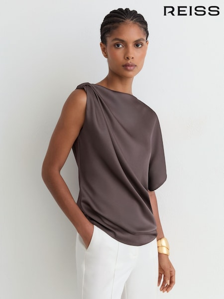 Reiss Mauve Kezia Satin Draped One-Shoulder Top