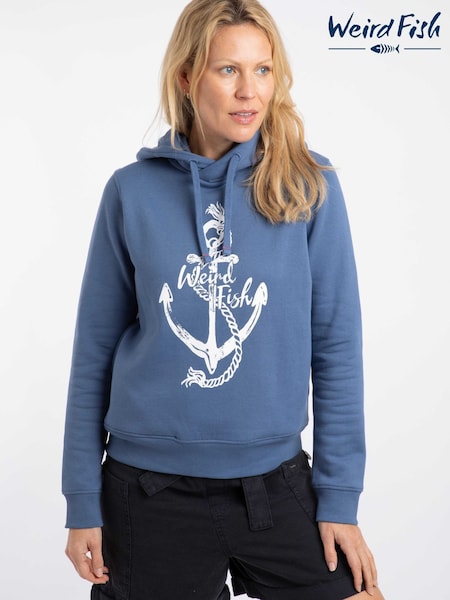 Weird Fish Blue Topaz Branded Pop Over Hoodie