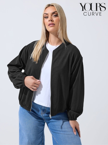 Yours Curve Black Limited Zip Bomber Jacket